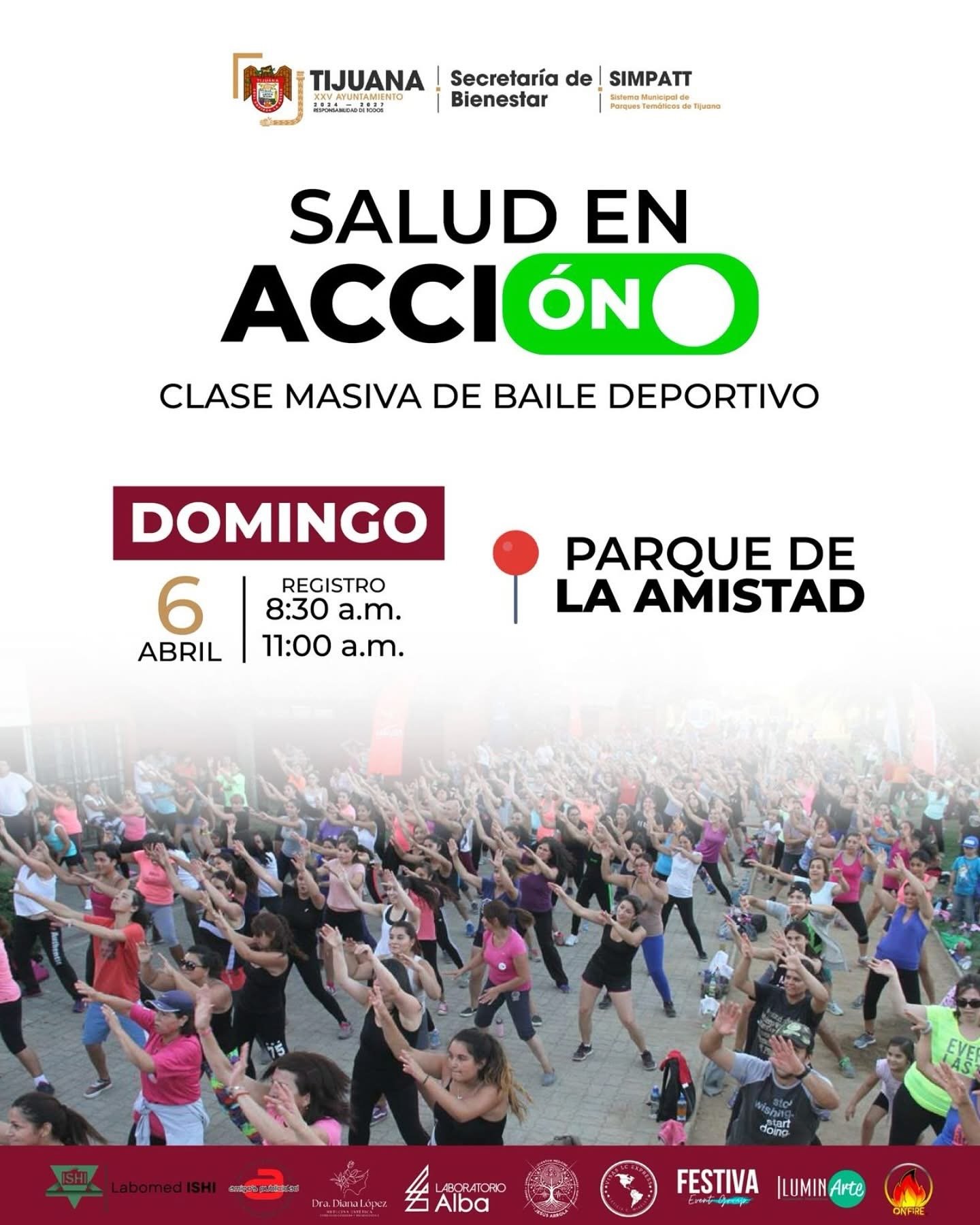 El Sistema Municipal de Parques Temáticos de Tijuana, en colaboración con ON FIRE, te invita a la Clase Masiva de Baile Deportivo “Salud en Acción “. ¡Una mañana llena de energía, ritmo y diversión con más de 10 instructores invitados! 🕺💃