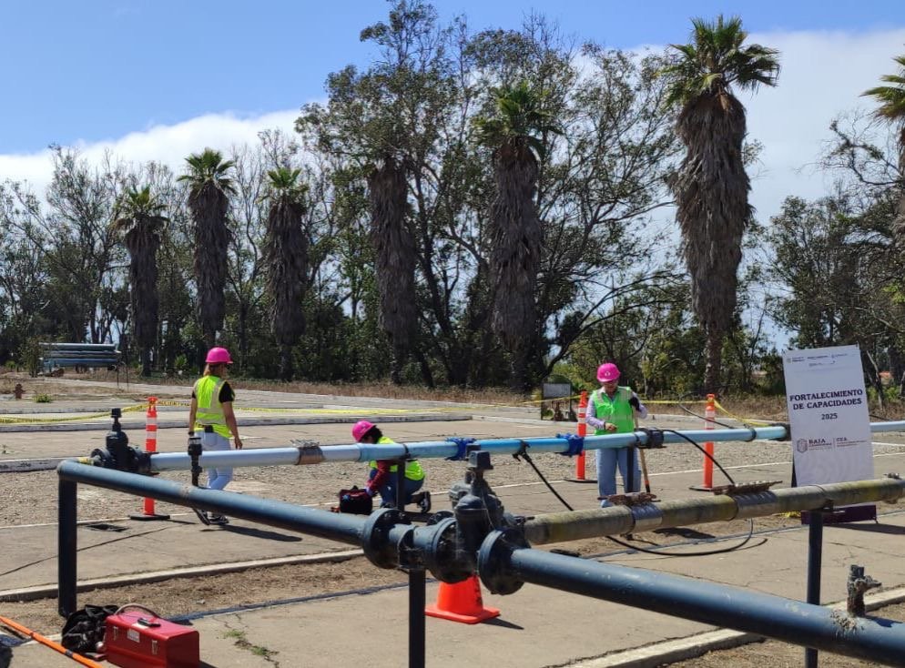 Como primera capacitación se con la certificación EC0145 «Conservación de la red de agua potable», donde las compañeras adquirieron conocimiento teórico y práctico en temas como pérdidas de agua en sistemas de distribución; preparación del lugar de trabajo, equipo, herramientas y materiales; así como atención a fugas, reparación e instalación de tuberías y accesorios de la red de agua potable.